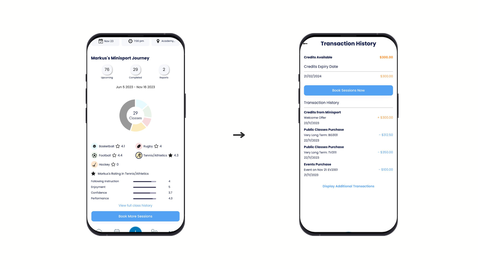 - The app provides detailed performance reports and milestone updates, allowing you to monitor your child's development in their chosen sports activities.